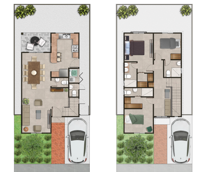 2 DORMITORIOS CON SU PROPIO BAÑO .